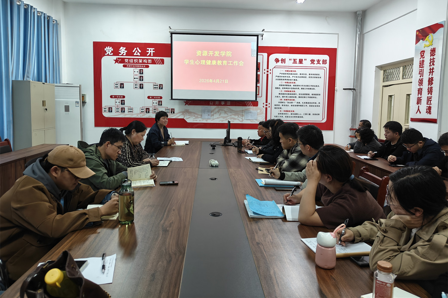 会议传达了教育部关于加强学生心理健康管理工作的相关文件精神,并结合资源开发类专业学生的学习特点、成长规律及心理发展诉求,系统分析了当前工作面临的新形势与新挑战。