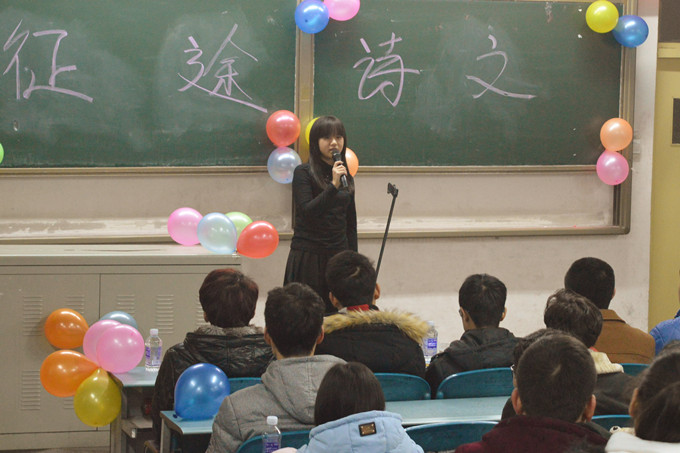 十一月三十日晚,文教部征途诗文协会举办第八届原创诗歌赛,本次原创诗歌赛由院团委与文教部主办,征途诗文协会承办。机械工程学院胡南南获得一等奖,资源开发学院许豪天,电力工程学院陈宁一,化工学院荣秋雨获得二等奖。刘英歌,陈思梦,陈方园,刘青秀,贾梦秋,周巧婷分别获得三等奖。(邵 超)