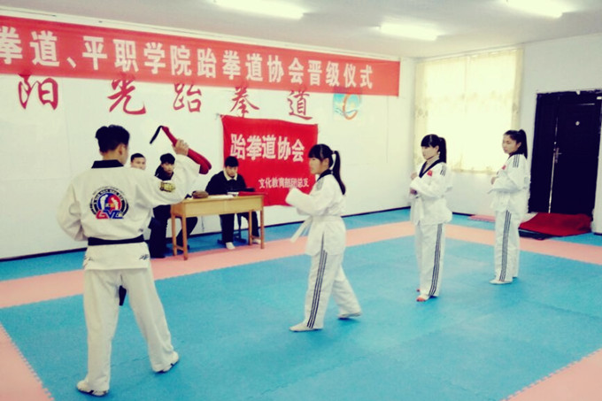 11月28日,我院文教部跆拳道协会与阳光跆拳道道馆联合举办升级考带活动。