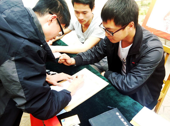 这一天,该院学生在教学楼前设立失物招领展板,展示学校门卫处收到的全部失物。活动现场分类摆放的有银行卡、饭卡、杯子、钥匙、数据线等物品,失主可对自己丢失的物品作出简单描述,符合事实并出示自己的学生证,即可签字认领。此次活动帮助了更多的同学及时找到丢失的物品,展现当代大学生路不拾遗的良好品德,传承了志愿者“奉献、友爱、互助、进步”的志愿服务精神,受到了学校同学的一致好评。图为失主在签字领取失物。(鲁 佳)