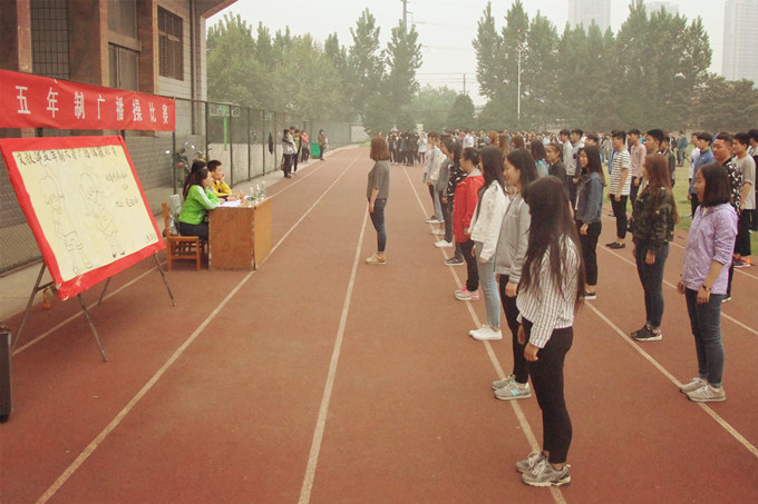 4月20日,文教部积极响应学院“四进五个一工程”的号召,在运动场内举办了文教部五年制大专广播操比赛。本次比赛以班为单位,14级五年制大专学生全员参赛。五年制大专三班的同学获得了比赛的第一名。