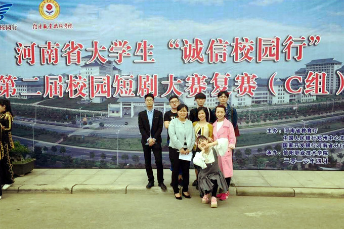 日前,由河南省教育厅、国家发展银行河南分行、国家开发银行联合举办的河南省大学生“诚信校园行”第二届校园短剧大赛(C组)在信阳职业技术学院举行。郑州大学、信阳师范学院等17所院校共选送22件作品参加了比赛。由我院学生创作并表演的作品《大学小事》荣获三等奖。