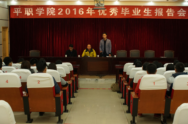 11月24日,就业处邀请我院三名优秀毕业生张龙、孙德华、张常委在图书馆报告厅为即将毕业的学弟学妹们现身说法,分别讲述了自己自毕业以来的奋斗历程和目前取得的一些成绩,鼓励学弟学妹们充满自信地走出校园,勇敢面对社会,用辛勤付出换来硕果累累。