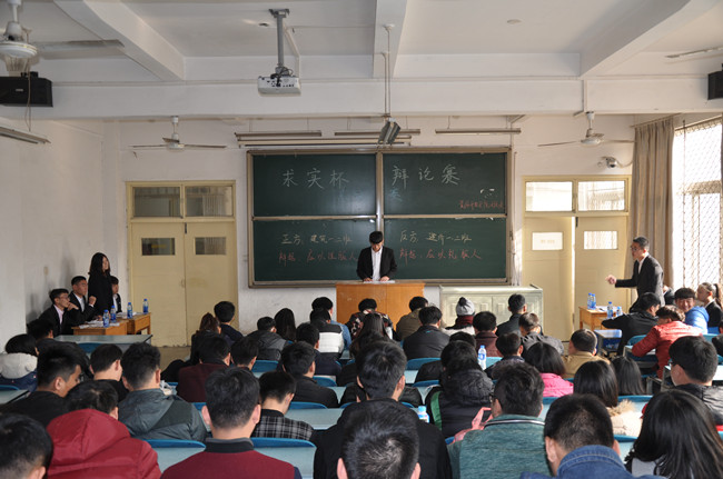 为丰富广大同学的业余生活,让同学们在繁重的学习之余放松心情,开阔视野,资源开发学院近期举办了第十一届“求实杯”大学生辩论赛。经过近十天的激烈角逐,四个优秀班级代表队脱颖而出。12月3日晚七点,辩论赛的决赛在2号教学楼108教室准时进行。资源开发学院团总支、学生会全体成员及各参赛班级100多名同学出席决赛。2016级工程造价1-2班摘取桂冠。