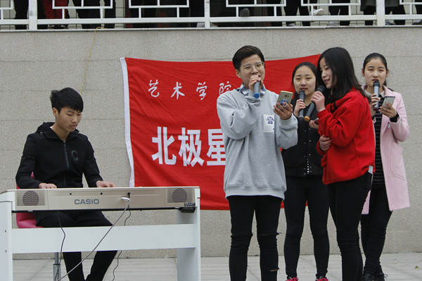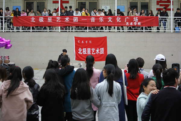 4月9日,艺术学院团总支在音乐文化广场在创业园广场举办主题为“舞动青春,唱响校园”科技文化艺术节活动。活动通过吉他弹唱、现代舞、民族舞、钢琴演奏、歌伴舞等形式为我院新生带来一场精彩演出,吸引了众多观众驻足观看。活动由北极星艺术团承办。