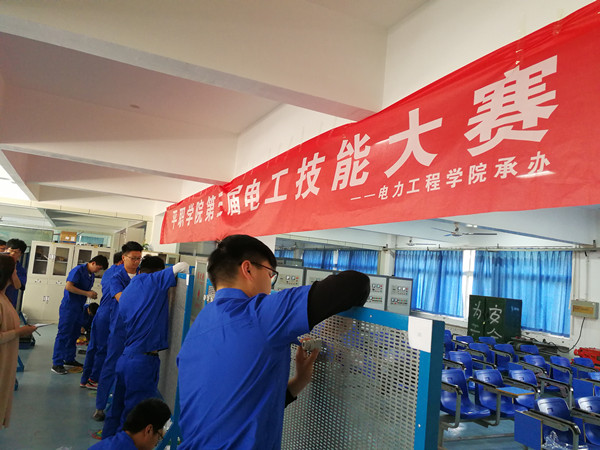 为提高学生的实际专业技能水平,调动广大学子的创造能力和动手能力,平职学院电力工程学院于4月18日下午在实训楼举行了“平职学院第三届电工技能大赛”, 电力学院党总支书记黄颖辉主持,院长郭宗跃、教务处副处长冯如鹤、副院长周斐等担任评委。