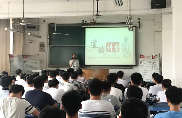 本次道德讲堂活动是按照“唱一首歌曲、诵一段经典、看一部短片、讲一个故事、做一个承诺、送一份吉祥、”六个环节展开。活动中,师生共唱《公民道德歌》,共颂道德经典名句,并观看了2017年感动中国人物秦玥飞的事迹短片。在秦玥飞身上我们看到了“真诚”,作为新时代的大学生应当向他学习,用真诚来回报社会,为建设中国特色社会主义事业为努力拼搏。