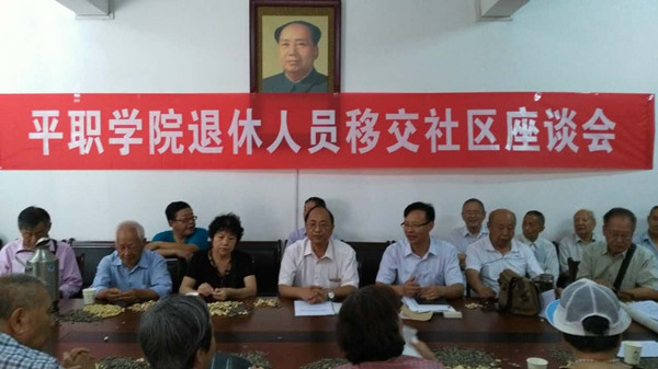 6月12日,平职学院在工贸校区退管处会议室召开了我院退休人员移交社区座谈会。退管处处长董德明主持会议。