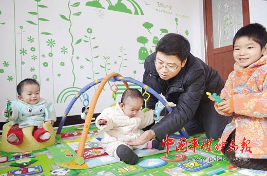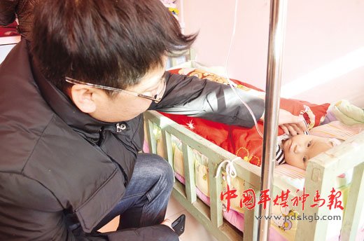 图三谢卓奇抚摸正在输液的小病号晓晓
