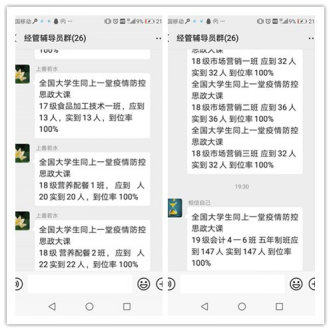 经管学院组织各个专业、各年级学生与教师,认真观看,在各个班级群里积极打卡,基本达到满勤状态。