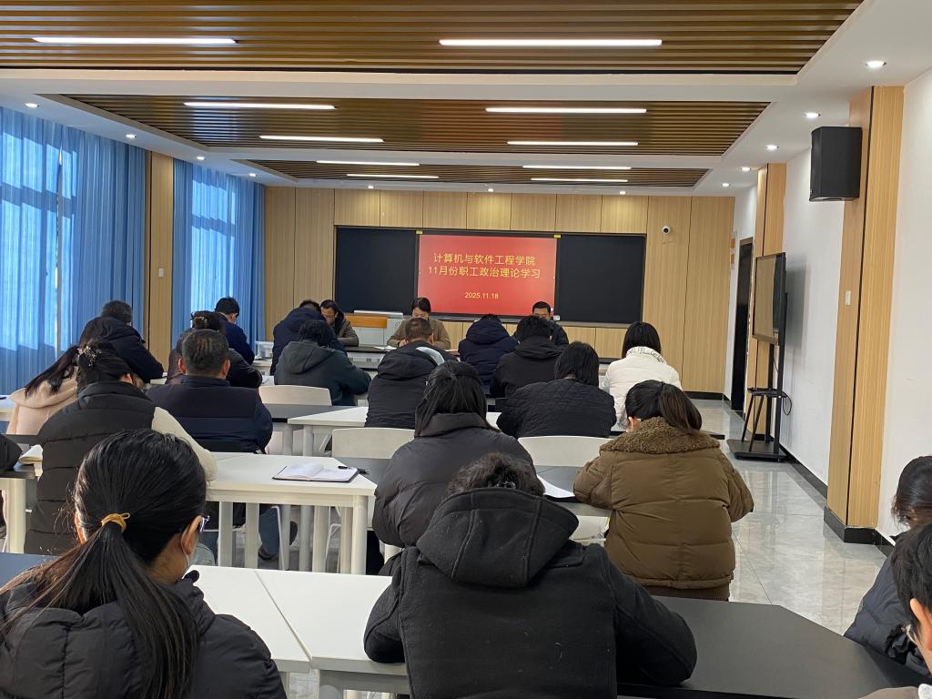 11月18日,计算机与软件工程学院全体教职工在人工智能产业学院202教室召开集中学习会,集中学习《“十五五” 规划建议》主要内容摘要内容。党总支副书记耿宾涛主持学习,全体教职工参加学习。