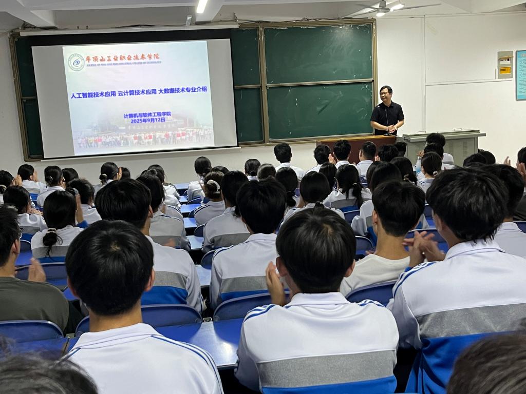 为帮助 2025 级新生快速明晰人工智能专业群定位、找准岗位实践对接方向,坚定提升 AI 应用技能与参与产教协同发展的信心,9 月 12 日,计算机与软件工程学院以 “解码 AI 未来,锚定职业航向” 为主题,组织开展 2025 级新生专业宣讲活动,为新生开启专业学习之旅筑牢认知基础。