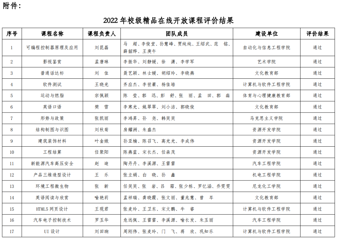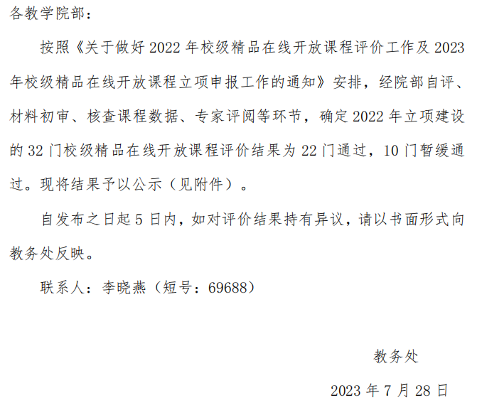 关于2022年校级精品在线开放课程评价结果公示