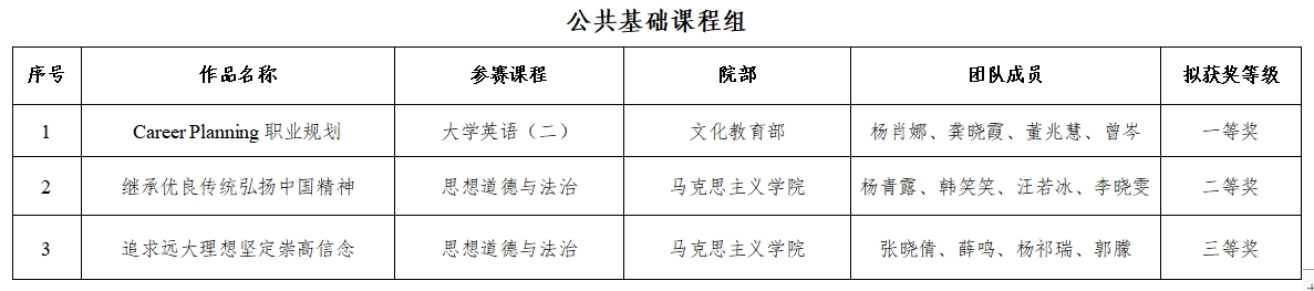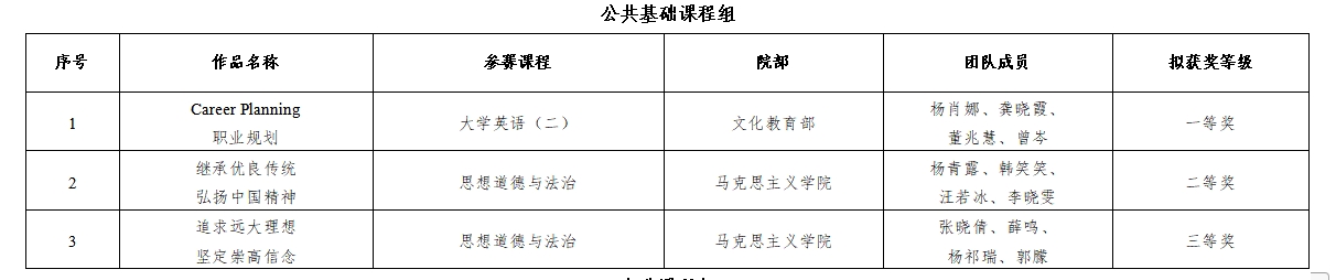 为进一步提升我校教师教学能力和水平,持续深化“三教改革”,学校于1月16日举办了第五届教师教学能力大赛现场比赛,本着优中选优、宁缺毋滥的原则,经资料评审、教学实施报告介绍、无学生教学展示和现场答辩等环节,共评出一等奖4项、二等奖4项、三等奖4项,现将拟获奖名单予以公示: