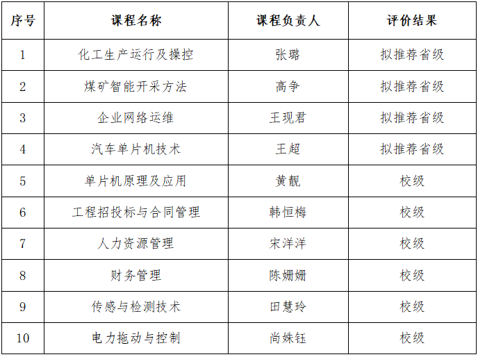 按照教育部《关于加快推进现代职业教育体系建设改革重点任务的通知》(教职成厅函〔2023〕20 号)和《关于开展 2023 年河南省职业教育一流核心课程(线下)认定工作的通知》(教办职成〔2023〕293 号)要求,我校组织开展了2023年职业教育一流核心课程(线下)的申报推荐工作。经院部推荐、资料审核和专家评审,拟认定10门校级职业教育一流核心课程(线下),拟推荐4门课程参与河南省职业教育一流核心课程(线下)申报。具体名单见附件。