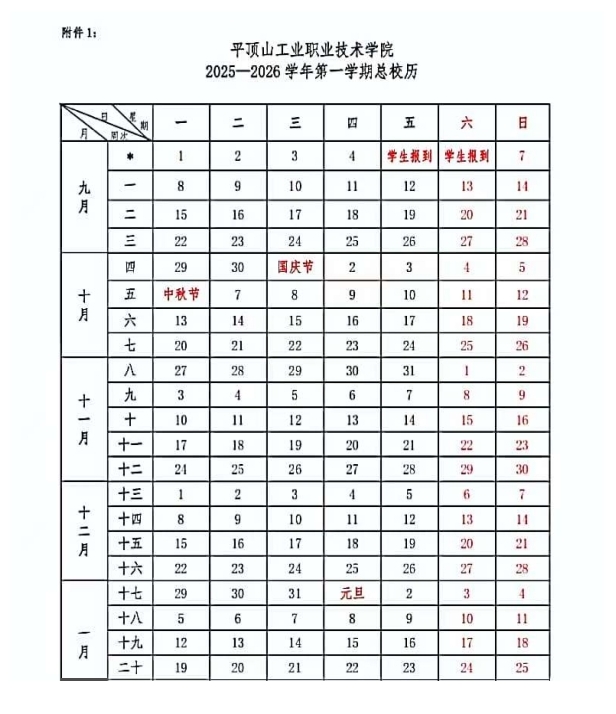 2025-2026学年第一学期总校历