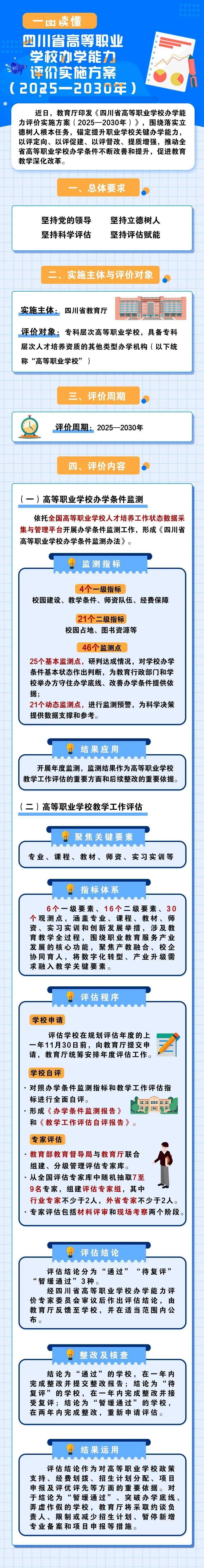 近日,甘肃省教育厅、四川省教育厅先后印发《甘肃省高等职业学校办学能力评价实施方案(2025-2030年)》《四川省高等职业学校办学能力评价实施方案(2025—2030年)》,围绕落实立德树人根本任务,锚定提升职业学校关键办学能力,以评定向、以评促建、以评督改、提质增强,推动全省高等职业学校办学条件不断改善和提升,促进教育教学深化改革。一起来看~
