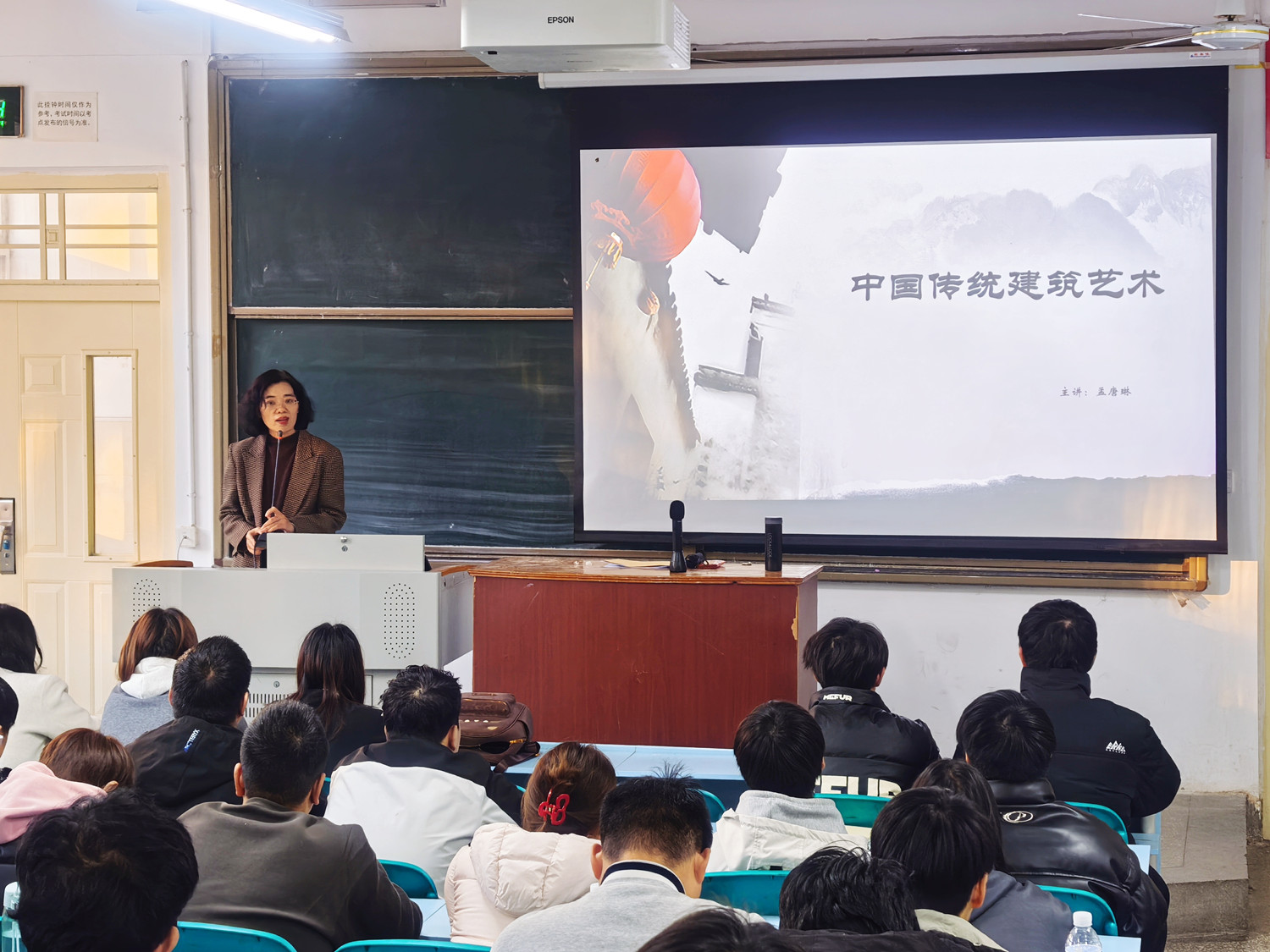 艺术学院孟唐琳老师主讲了《艺术导论-中国传统建筑艺术》课程。她以“建筑里的文化根脉”为线索,通过讲解、分析与讨论结合的方式,借助多媒体课件,带领学生探寻中国传统建筑的审美特征与文化密码。课程紧扣“理解建筑艺术特色,挖掘人文内涵”的教学重点难点,引导学生从斗拱、榫卯中读懂工匠精神,从庭院布局中领悟“天人合一”哲学,在提升审美鉴赏力的同时,厚植文化传承意识,其教学深度与人文关怀尽显专业风采。