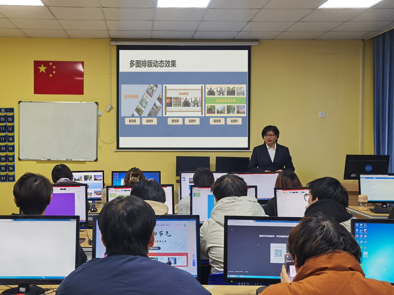 计算机与软件工程学院夏焱老师主讲了《信息技术与人工智能-多图排版动态效果》课程。她采用讲练结合、任务驱动、案例教学法,围绕美化演示文稿、增加动态效果展开。夏老师聚焦演示文稿对象插入编辑、批量设置与组合、动画添加设置等内容,明确知识、能力、素质目标,突出批量设置对象和动画添加的教学重点,攻克批量设置对象路径及动画路径调整难点,助力学生提升演示文稿制作效率与创意设计能力,展现了其扎实的教学功底与高效的教学理念。
