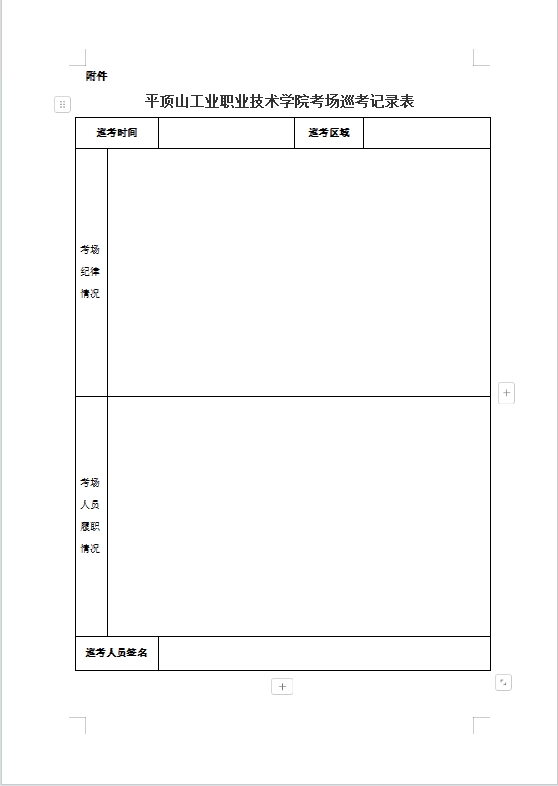 附件 平顶山工业职业技术学院考场巡考记录表