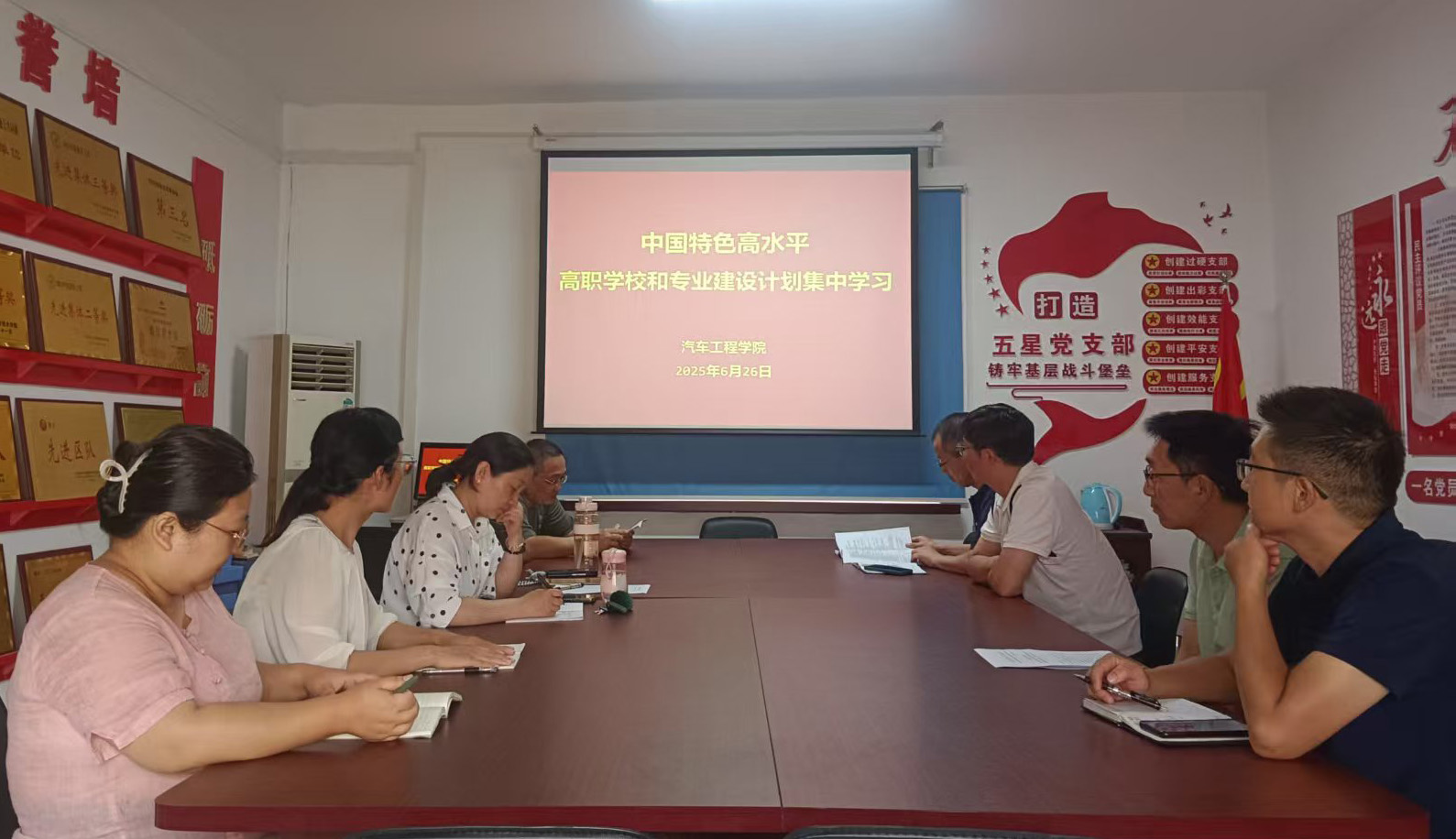 2025年6月26日下午,汽车工程学院在二楼会议室组织开展了中国特色高水平高职学校和专业建设计划(2025年—2029年)集中学习活动,旨在深入领会政策精神,明确专业建设方向,推动学院高质量发展。