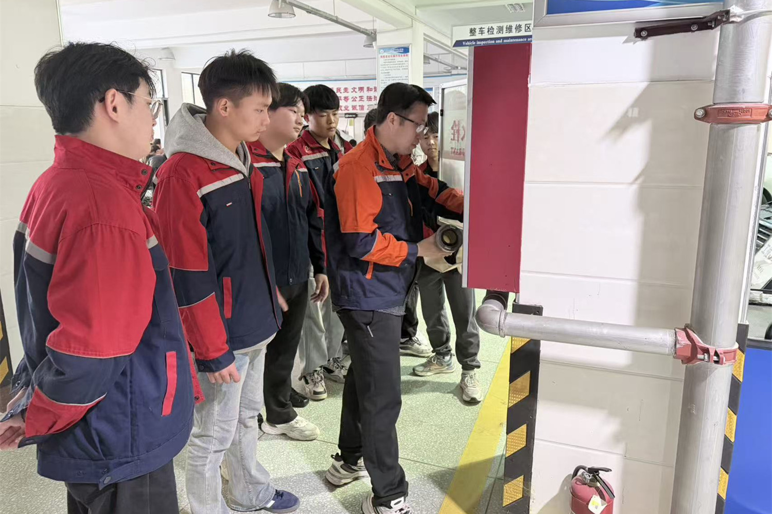 实操演练环节,学生们踊跃参与灭火器实操训练。工作人员现场指导大家亲身操作,及时纠正不规范动作,确保每位参与者都能熟练掌握灭火技能。同时,结合新能源汽车专业实训场景中可能存在的消防安全隐患,工作人员进行专项安全讲解,助力强化专业学习与实践过程中的安全防护意识。