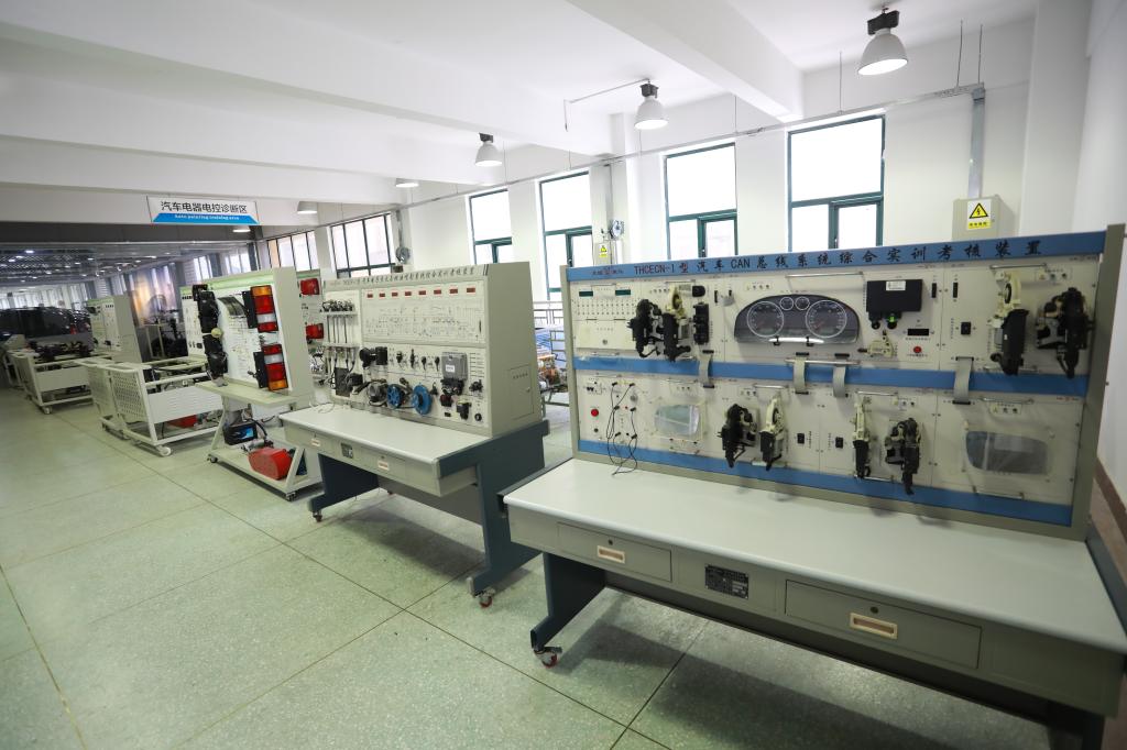 汽车电器电控诊断实训室现有40个工位,主要进行汽车电路、电控系统常见故障的检测、诊断、排除实训,并满足汽车维修工和汽车维修电工(初级、中级、高级)等培训考核实训,满足汽车专业领域“汽车电子电气与空调舒适系统”等级模块初﹑中级的培训考核要求。