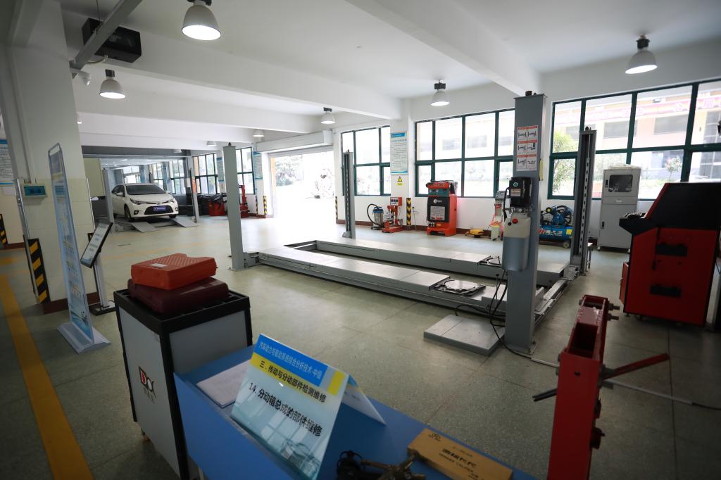 汽车维修实训室分为汽车整车维修实训区和新能源汽车诊断与维修区两个区域。
