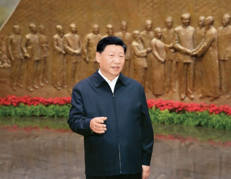 (2019年9月12日,中共中央总书记、国家主席、中央军委主席习近平视察中共中央北京香山革命纪念地。这是习近平在香山革命纪念馆参观《为新中国奠基》主题展览,并发表重要讲话。 新华社记者 黄敬文/摄)