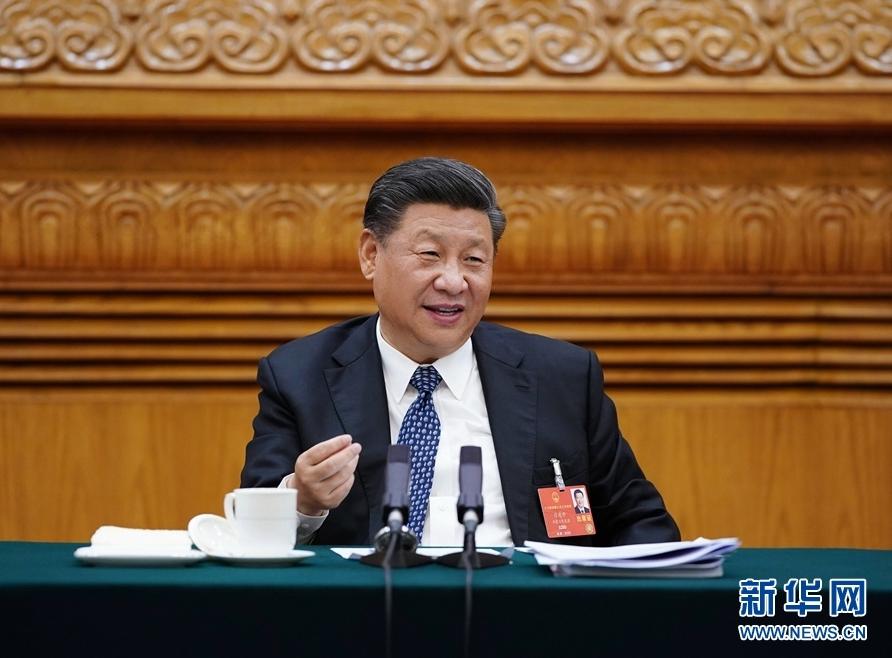 (5月24日,中共中央总书记、国家主席、中央军委主席习近平参加十三届全国人大三次会议湖北代表团的审议。 新华社记者 李学仁 摄)