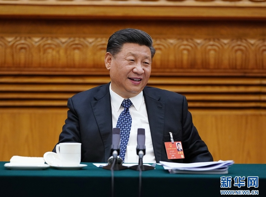 (5月24日,中共中央总书记、国家主席、中央军委主席习近平参加十三届全国人大三次会议湖北代表团的审议。 新华社记者 黄敬文 摄)