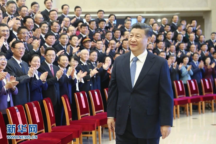 上午10时,习近平等来到京西宾馆会议楼前厅,全场响起热烈掌声。习近平等走到代表们中间,同大家亲切交流并合影留念。