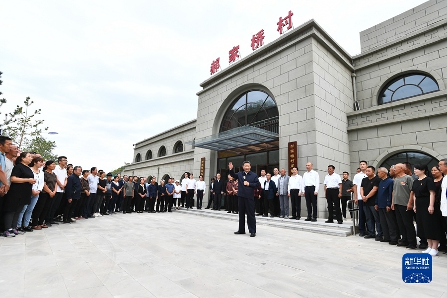 位于绥德县城西南的张家砭镇郝家桥村,是绥德地委在抗战时期经过调查研究发现的一个模范村,通过开展“村村学习郝家桥,人人学习刘玉厚”活动,掀起了大生产热潮。党的十八大以来,郝家桥村积极发展特色产业,村容村貌和村民生活发生了深刻变化,荣获“全国脱贫攻坚楷模”荣誉称号。14日下午,习近平来到这里,详细观看村史展览,了解这个“红色山村”的光荣革命历史以及革命传统传承情况。随后,习近平来到村民侯志荣家中看望。侯志荣一家曾经因病致贫,靠着各级帮扶和自身努力2016年摆脱贫困。习近平强调,看到你们一家人日子越过越好、人丁兴旺,我感到很欣慰。让乡亲们过好光景,是我们党始终不渝的初心使命,共产党就要把这件事情干好,不断交上好答卷。全党全国全社会都要大力弘扬脱贫攻坚精神,奋发图强、自力更生,不断夺取全面建设社会主义现代化国家新的更大胜利。