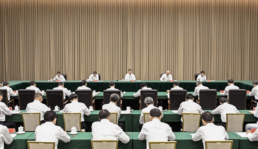 11月6日,中共中央总书记、国家主席、中央军委主席习近平在海南三亚听取海南自贸港建设工作汇报,发表了重要讲话。新华社记者 申宏 摄