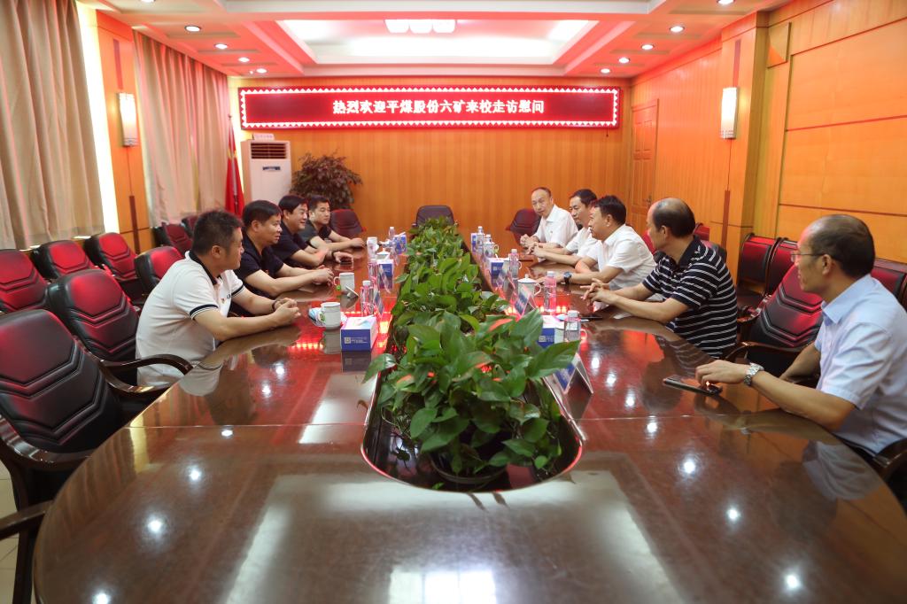 9月9日上午,平煤股份六矿矿长杨俊青、党委副书记郑跃华、工会主席曹其俭等一行到我校进行教师节走访慰问。在办公楼三楼会议室,校长李树伟、副校长王任远、纪委书记李清锋、副校长张立方、总会计师刘怀珍等校领导与来宾进行了座谈。