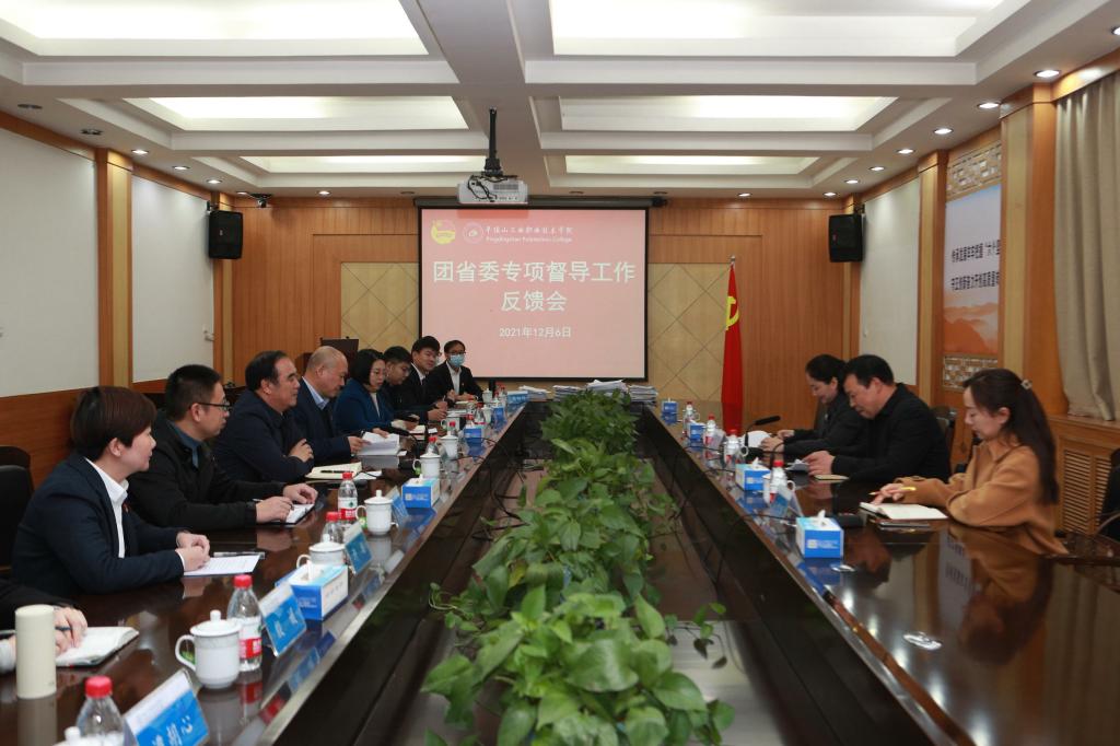12月6日下午,以平顶山学院团委书记王刘涛为组长的河南省高校共青团改革评估第十二督导组一行四人莅临我校,对我校共青团和学生会改革工作进行专项评估督导。学校党委书记毕晓阳,副校长刘翱翔出席会议并讲话,集团团委负责人于敬等领导,学校团委全体工作人员、各院系团总支书记、学生代表参加了汇报会。会议由集团团委负责人于敬主持。