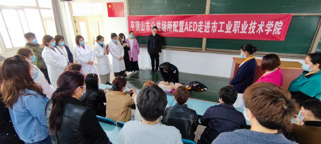 在捐赠现场,市急救中心工作人员为卫生所全体医务人员及宿舍管理员详细讲解了在“黄金4分钟”内,如何采取正确的急救措施,并用教学模具现场演示心肺复苏、AED使用方法等急救技能,切实提高了我校医护人员和宿管的急救能力。