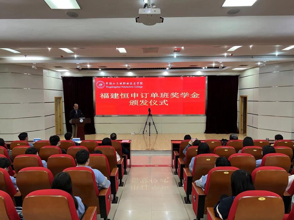 3月15日,我校在图书馆报告厅举办2020级福建恒申订单班奖学金颁奖典礼。副校长张立方出席典礼并讲话。教务处、就业处等相关部门负责人,尼龙化工学院全体教师、2020级福建恒申订单班学生代表参加了典礼。福建恒申集团生产总监梁飞,综合办经理周美林在线参加了颁奖典礼。