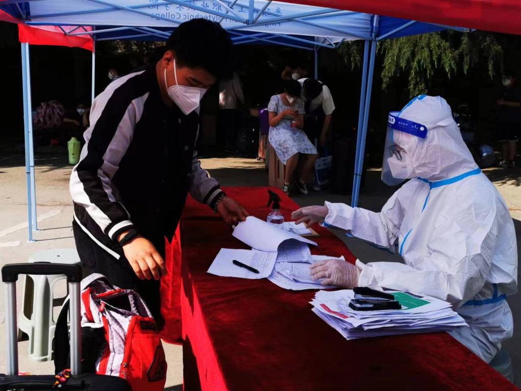 5月23日、24日,我校专升本学生有序返校。根据学校疫情防控要求,各学院接待人员对考生分别进行行李消毒--体温检测--更换N95口罩--手消毒--扫场所码--查验健康码和行程卡以及48小时内核酸检测阴性证明,并根据考生返校前所处地域,设置省内与省外两个通道进行身份核验,收缴两码一卡、《返校行程卡》和《返校承诺书》等5项纸质材料,由防疫专用车把考生和行李送达到隔离宿舍区,经再次消毒、测温、身份核验,入住宿舍,两天共安置返校考生八百余名。