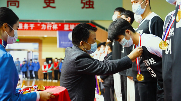 11月19日下午,我校在综合馆举行第五届“力行杯”篮球赛颁奖典礼暨全明星篮球赛,校长李树伟,副校长李新玉、张立方、刘怀珍出席颁奖典礼并颁奖。