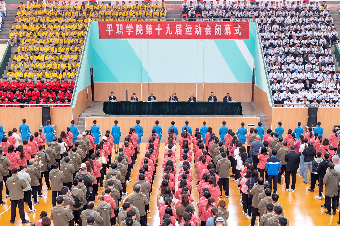 4月28日,学校第十九届运动会完成各项赛事,顺利闭幕。闭幕式在综合馆举行,校党委常务副书记、工会主席刘翱翔出席闭幕式,相关部门负责人,各院部师生代表共计2000余人参加活动。