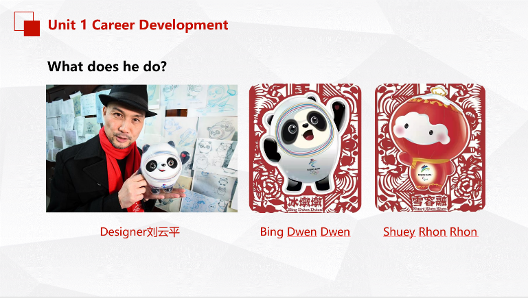 公共英语教研室:《大学英语》课上,张杨老师以北京冬奥会吉祥物(Mascot)冰墩墩(BingDwenDwen)的设计师(Designer)刘云平为切入点,为学生介绍了BingDwenDwen译名的缘由及内涵,引发了同学们对中英发音规则差异和拟声词转译拟态词的热烈探讨,让学生感受到中国汉字和拼音的有趣魅力和深厚底蕴。