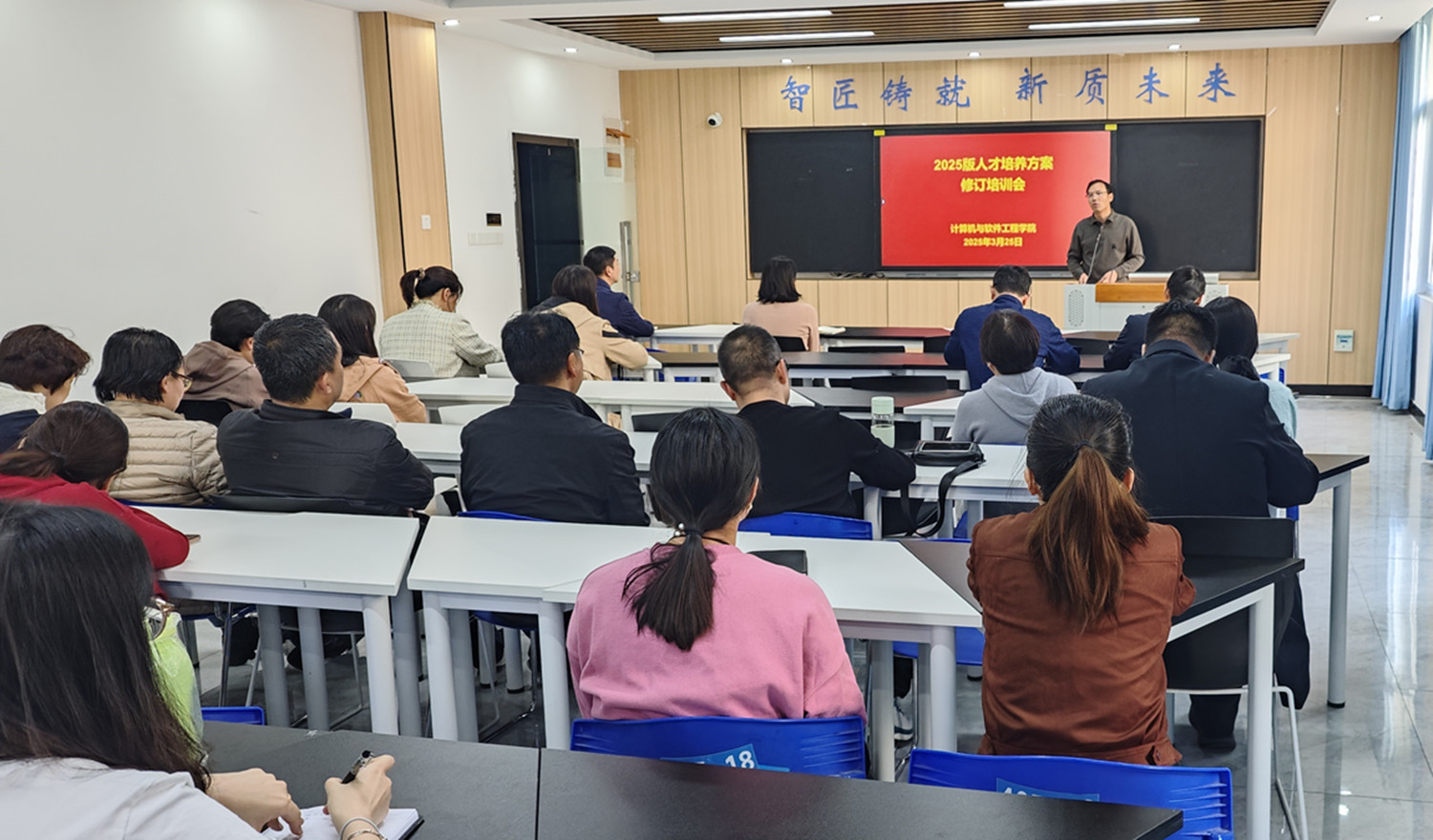 3月25日,计算机与软件工程学院在人工智能产业学院040201智慧教室召开2025版人才培养方案修订培训会。会议旨在构建人工智能大模型背景下更加适应行业发展与岗位需求的人才培养体系。