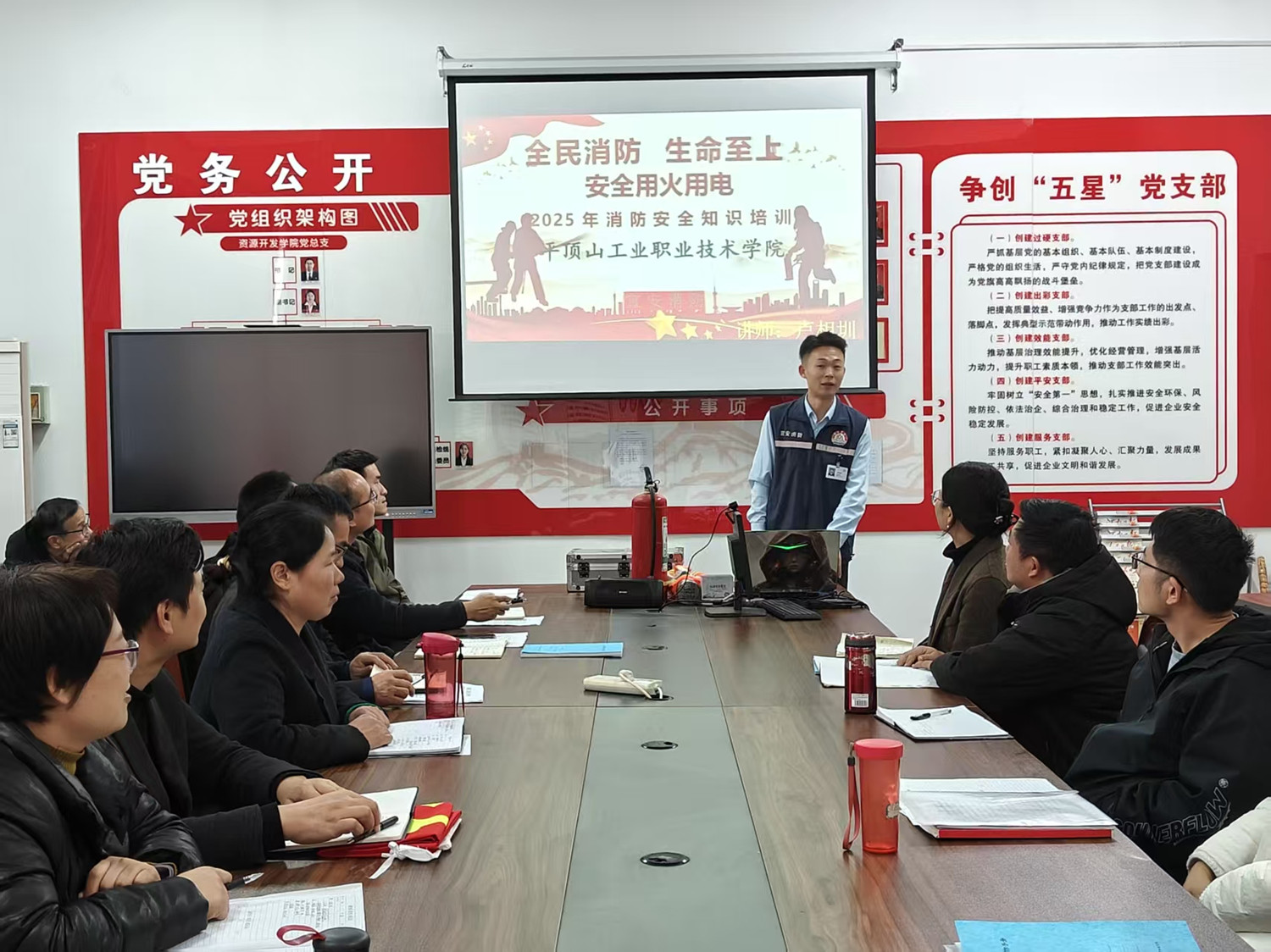为进一步强化师生消防安全意识,提升应急避险和自救互救能力,切实保障校园安全稳定。10月21日,资源开发学院特邀消防支队卢教官,在党建会议室举办消防安全知识专题讲座。学院全体教师参加。