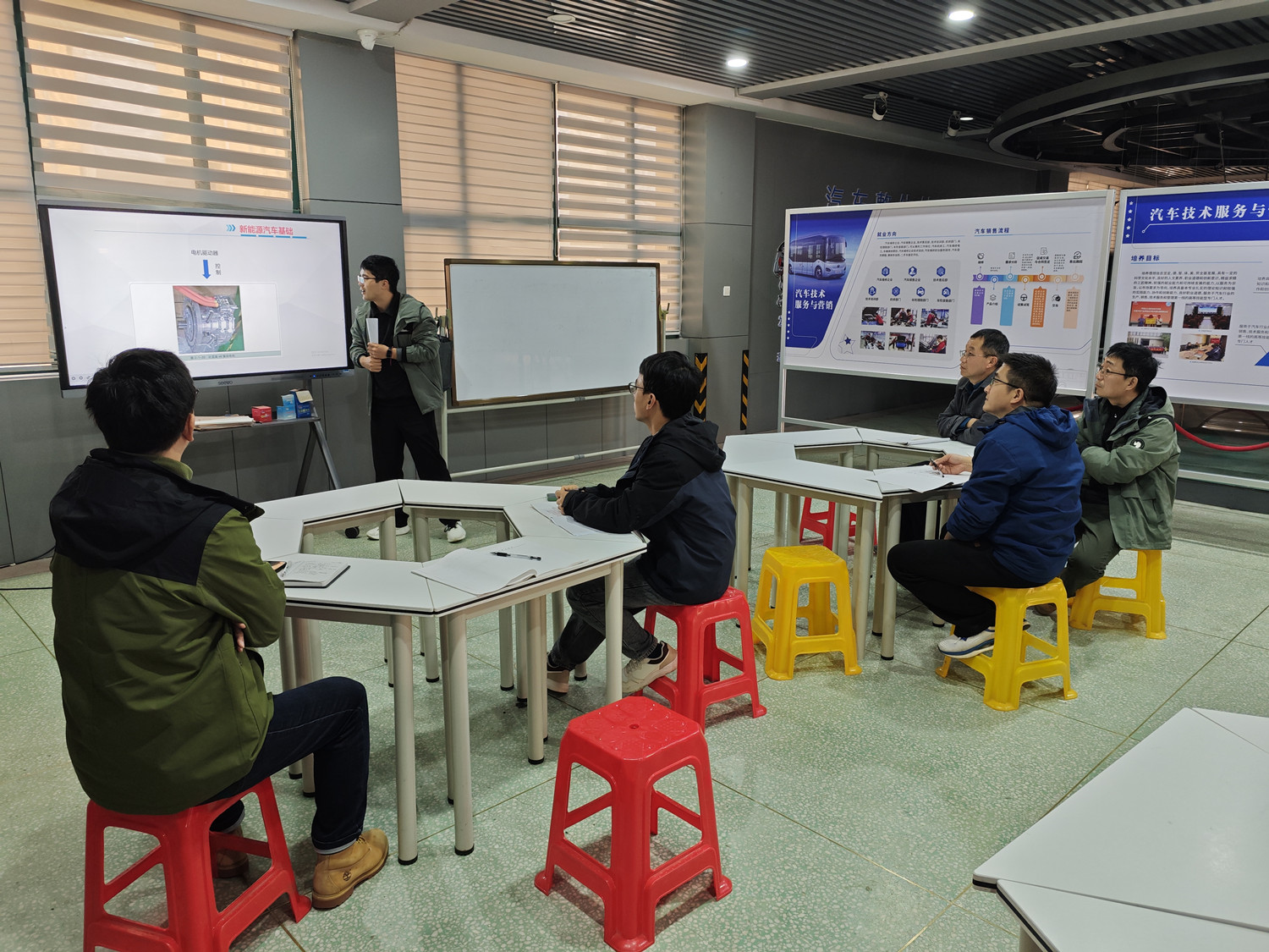 为进一步助力新教师快速适应教学岗位,提升专业课程教学质量,10月29日下午,汽车工程学院在实训中心开展新教师试讲活动。本次试讲课程为《新能源汽车技术》,教研室主任及骨干教师组成评议小组,全程参与听课并逐一进行点评。