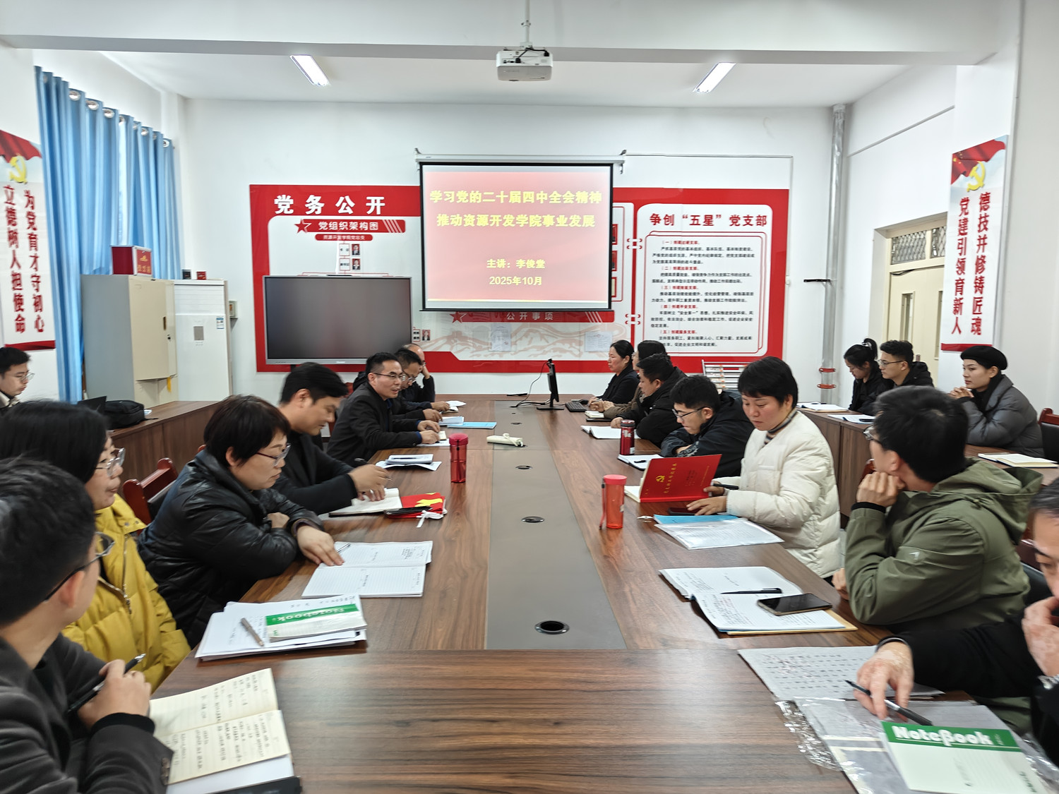 10月24日,资源开发学院在党建会议室开展主题党日活动,学院党总支书记为全体党员上了一堂精彩的党课。