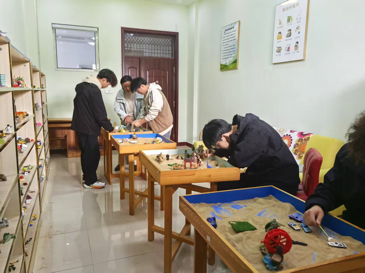 活动中,心理中心专职咨询师化身“向导”,带领新生有序参观预约接待室、个体咨询室、团体辅导室、情绪宣泄室、情绪放松室、沙盘游戏室和积极心理体验室等多个心理功能室。参观过程中,咨询师详细介绍了个体咨询预约方式、线上心理测评入口和线上心理咨询途径等服务内容,确保每一位新生都清楚“有需求时该找谁、如何找”。同时,结合新生刚入学校可能面临的适应问题,同步普及心理健康知识。