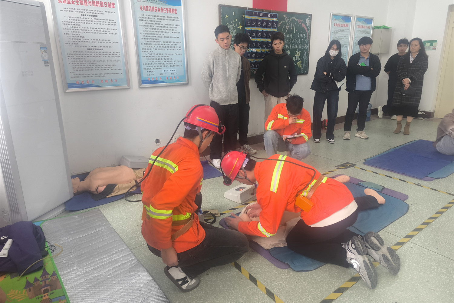 全体人员共同观看了资源开发学院学生参加矿井灾害应急救援技术比赛的现场操作。参赛学生动作规范、配合默契,面对模拟灾害场景沉着应对、精准处置,充分展现了我校学生朝气蓬勃、精益求精、勇于创新的精神风貌,也让调研团队直观感受到专业技能培养对学生心理素质和身体素质的高要求。