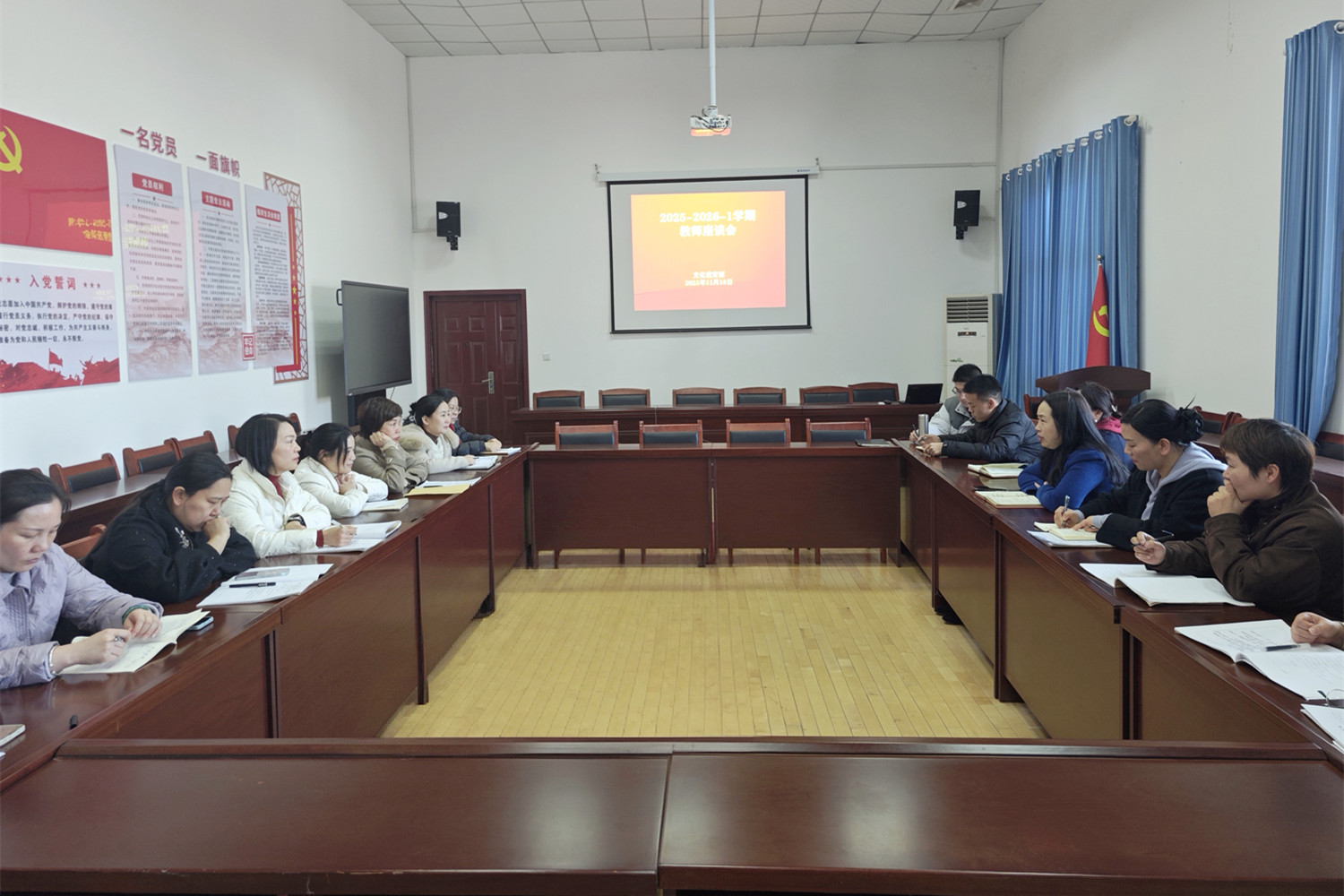 11月18日下午,文化教育部在竞赛馆三楼会议室召开教师座谈会。文化教育部领导、各教研室主任及教师代表参加会议。