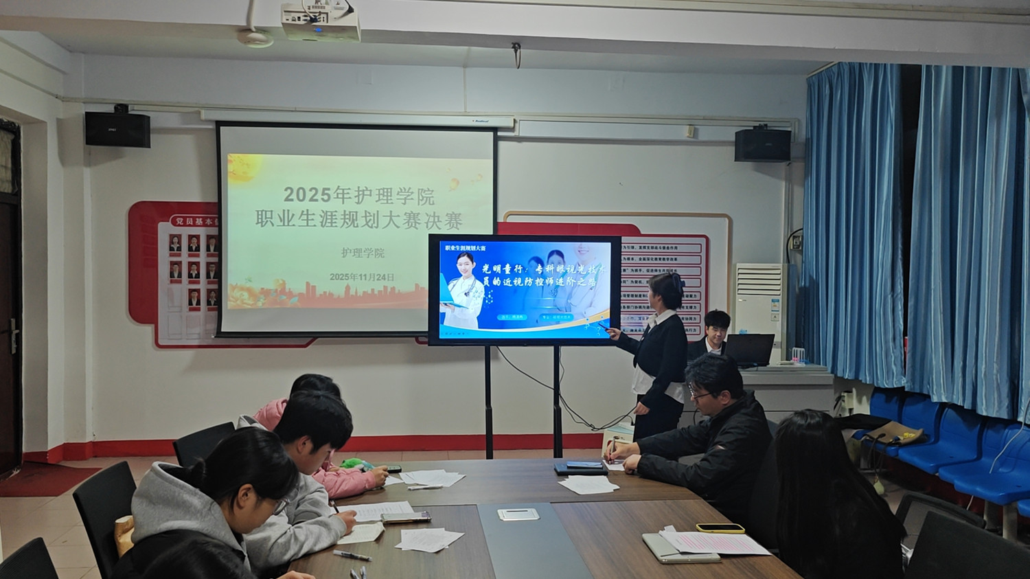 在11月24日举行的决赛中,选手们围绕眼视光技术与护理两大专业,提交了职业规划书,规划内容紧扣“一老一小”健康需求:护理专业学子锚定老年护理领域,立志成为老年慢病管理专家或智慧养老护理先锋;眼视光技术专业学子聚焦青少年近视防控现状,志在成为视觉健康守护者与科普工作者。选手们的规划方案路径清晰、人文关怀浓厚,充分彰显了深厚的专业素养与强烈的社会担当,赢得评委一致肯定。经严格评审,最终3名学生脱颖而出,将代表学院参加校级比赛